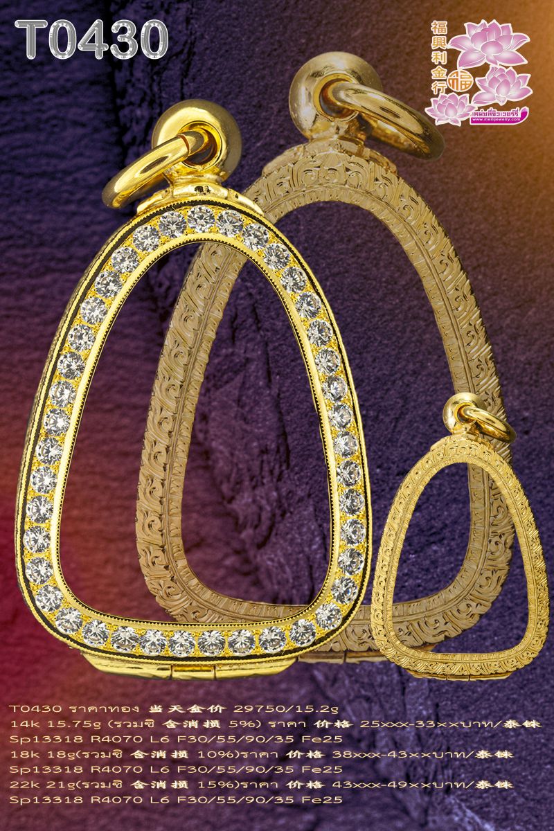 กรอบทองหน้าโอธรรมดายอดบนลายปาดลายล่างลายแข้งสิงห์ ยอดฝังเพชรทรงหนดน้ำ1เม็ด ข้างลวดเกลียว3ชั้น
